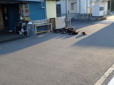 田代食堂の人に餌をもらった猫たち。 島の人がエサをやり島外の人の餌やりには注意が必要