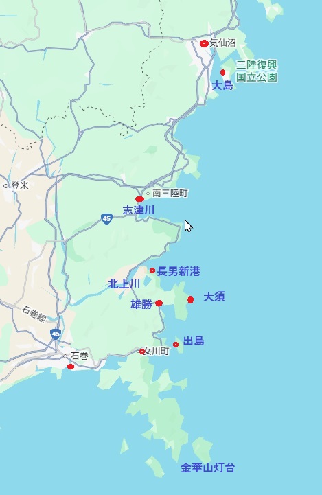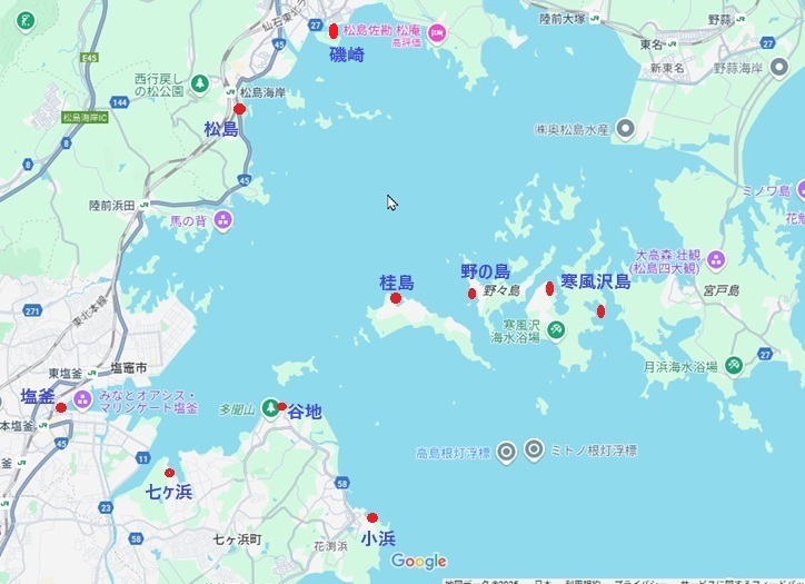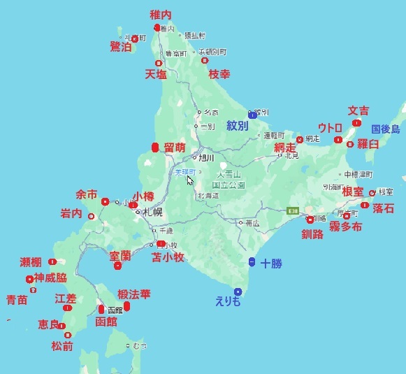 赤字の場所は実際に停泊したものです・青字は陸上から現地視察含む