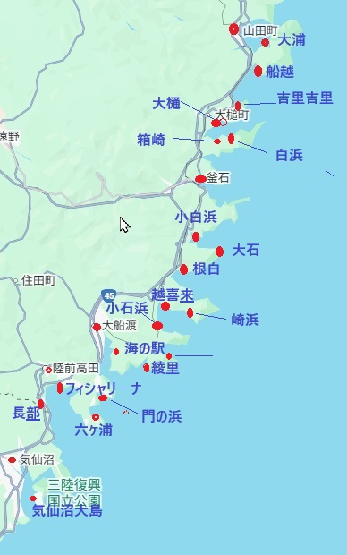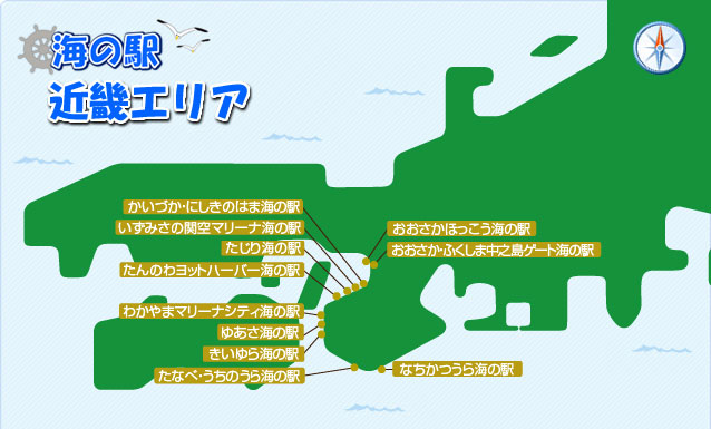 1. 海の駅 県名の赤字は実際に係留 県名の青字は陸から訪問