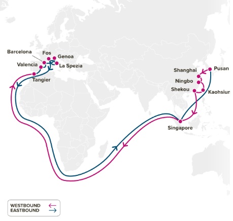 ONE社の地中海航路表